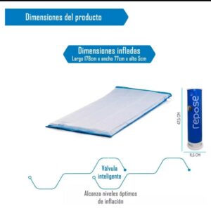 1.- Se compone de 6 cámaras de poliuretano y de aire interconectadas que se comunican entre sí. Las 2 cámaras exteriores son más anchas, ofreciendo una mejor estabilidad proporcionando una completa descarga de presión del Sacro.